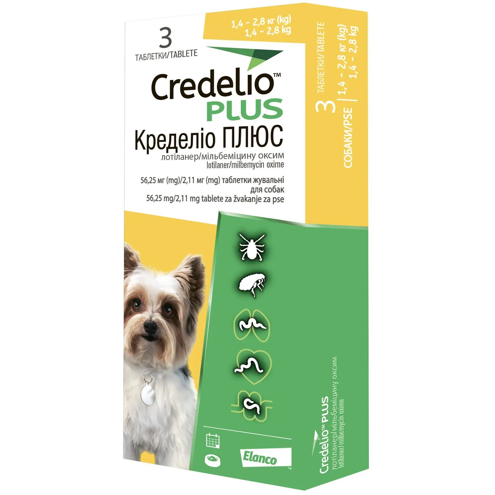 Протипаразитарні таблетки для собак Credelio Plus від бліх, кліщів та гельмінтів 1.4-2.8 кг 3 шт.