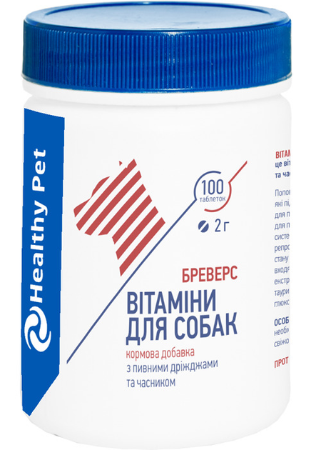 Вітаміни для собак Healthy Pet Бреверс з пивними дріжджами та часником 100 таблеток