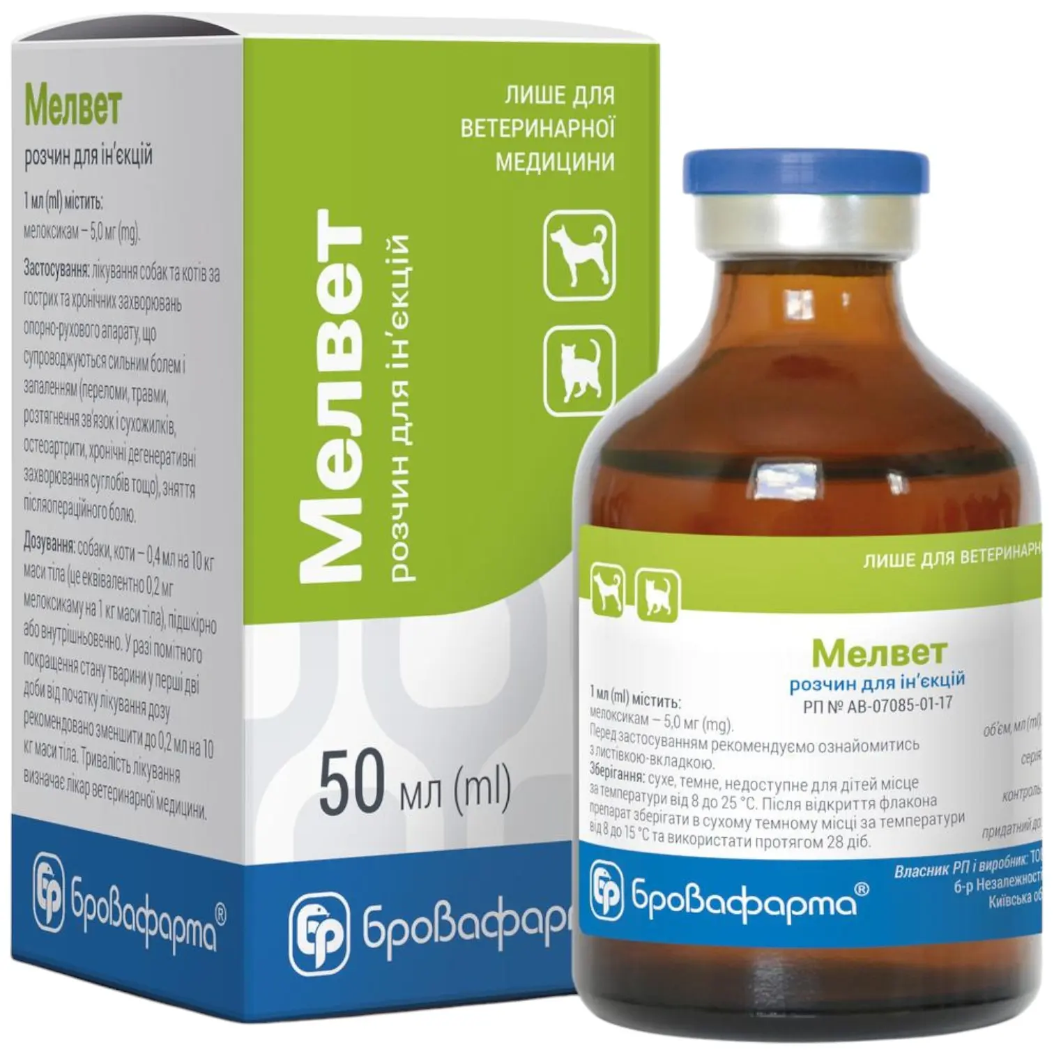 Протизапальний препарат Бровафарма Мелвет при захворюваннях опорно-рухового апарату розчин для ін'єкцій 50 мл