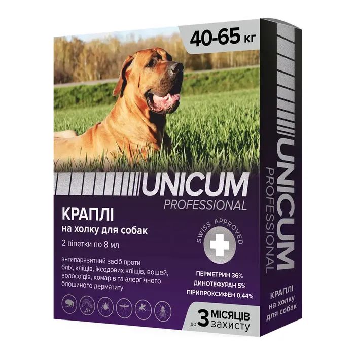 Краплі для тварин Unicum Pro від бліх, вошей, волосоїдів, комарів, москітів, іксодових кліщів для собак 40-65 кг/2 шт (48201