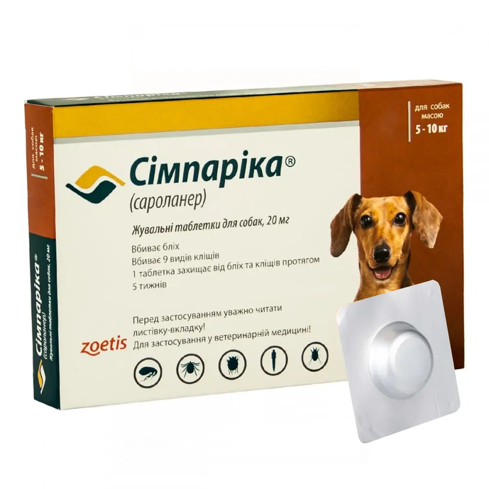 Simparica (Сімпаріка 20 мг) Таблетки від бліх і кліщів для собак вагою від 5 до 10 кг 1 таблетка