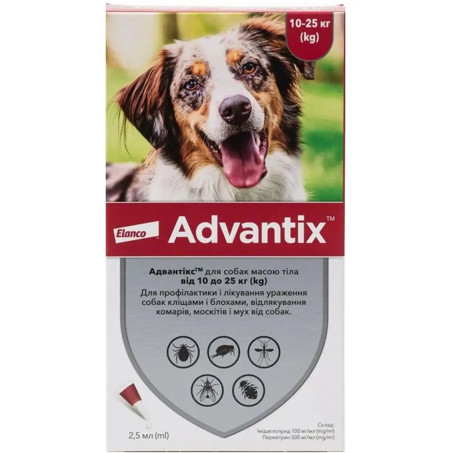 Краплі Elanco (Bayer) Advantix від бліх і кліщів для собак від 10 до 25 кг 2.5 мл 1 піпетка