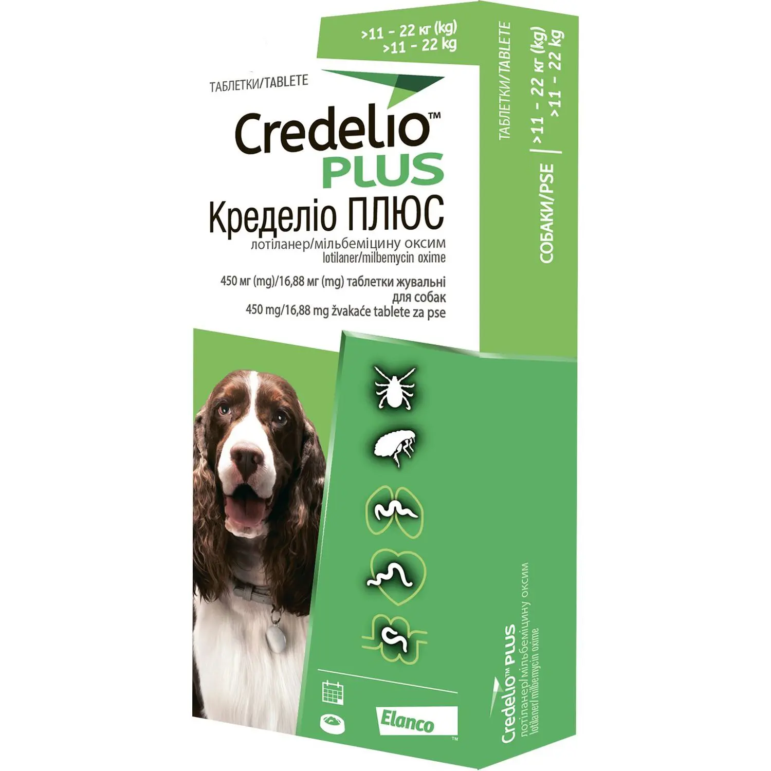 Протипаразитарні таблетки для собак Credelio Plus від бліх, кліщів та гельмінтів 11-22 кг 1 шт.