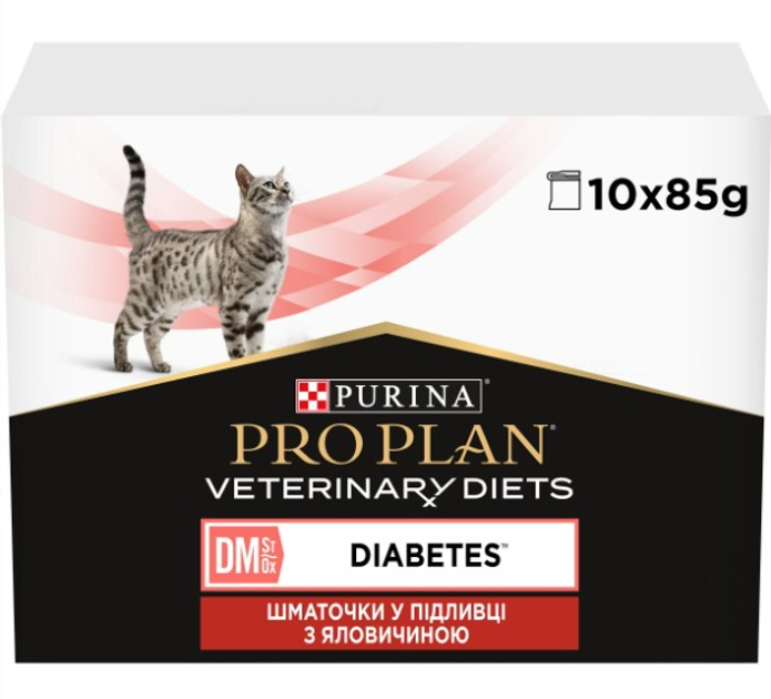 Вологий корм для кішок Purina Veterinary Diets DM - Diabetes Management Feline при діабеті 10 шт по 85 г (яловичина)