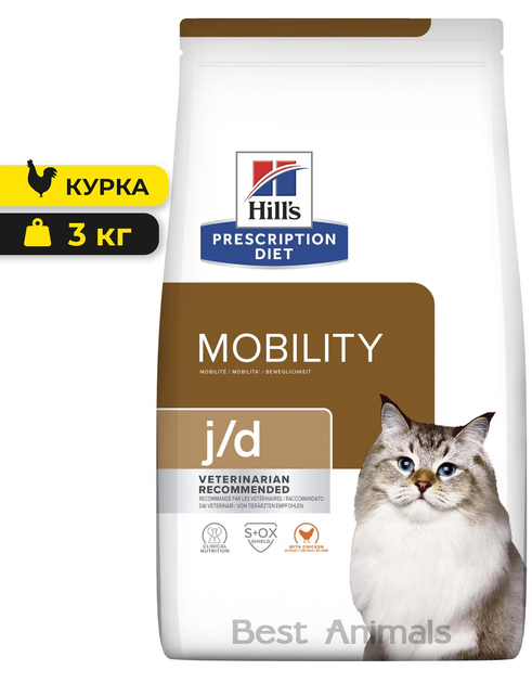 Ветеринарна дієта для котів Hill’s Prescription Diet j/d Mobility Хілс сухий корм з куркою для здоровёя суглобів 3 кг (05274