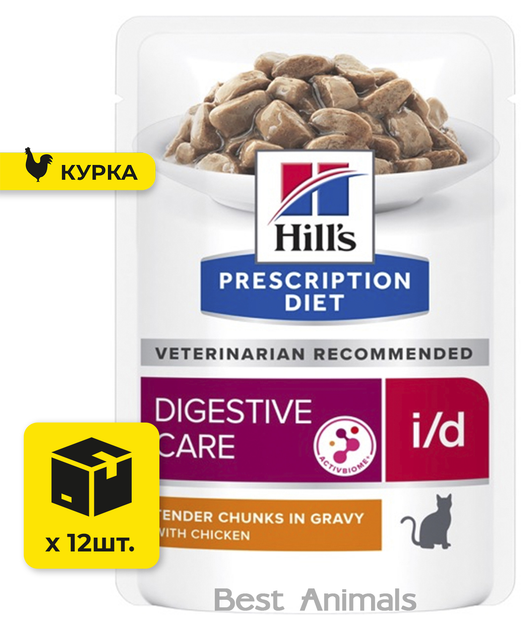 Ветеринарна дієта для котів Hill’s Prescription Diet i/d Digestive Care Хілс вологий корм з куркою для здоров'я ШКТ пауч 85