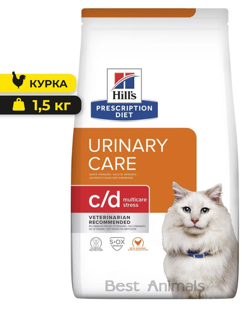 Ветеринарна дієта для котів Hill’s Prescription Diet c/d Multicare Stress Urinary Care Хілс сухий корм з куркою для підтримк