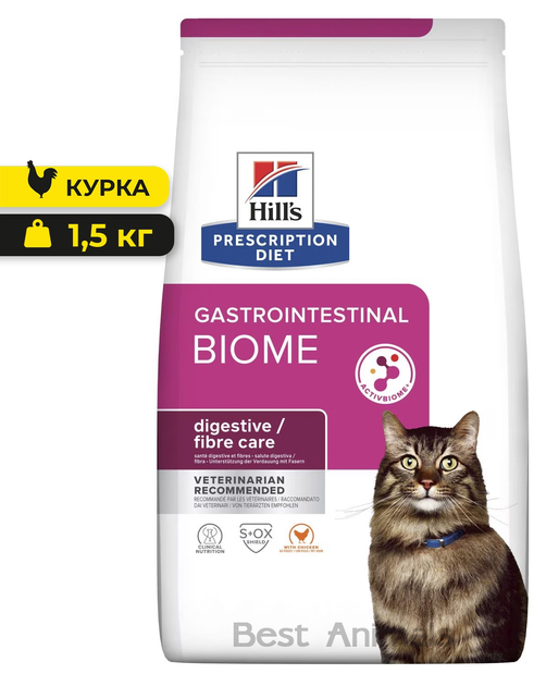 Ветеринарна дієта для котів Hill’s Prescription Diet Gastrointestinal Biome Digestive \ Fibre Care Хілс сухий корм з куркою