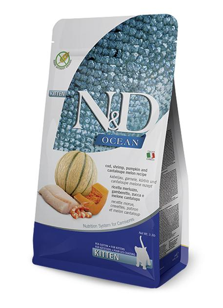 Сухий корм Farmina N&D Ocean Kitten Cod, Shrimp, Pumpkin & Melon беззерновий для кошенят, вагітних та кішок, що годують з тр