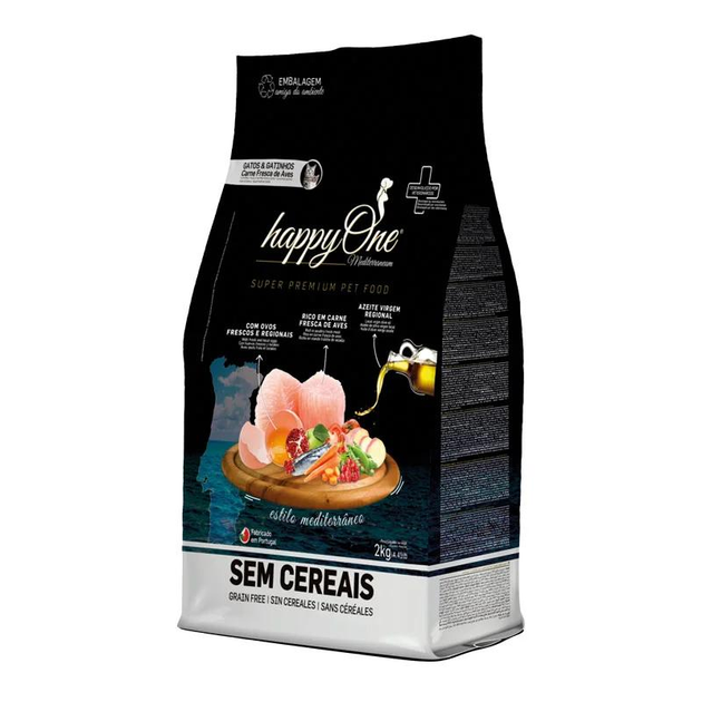 Сухий беззерновий корм happyOne Mediterraneum Adult Cat & Kitten для кошенят вагітних та годуючих кішок зі свіжим мясом 2 кг