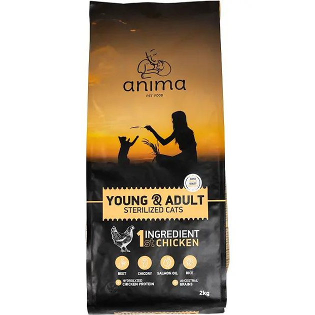 Сухий корм Anima для молодих і дорослих стерилізованих кішок з куркою 2кг