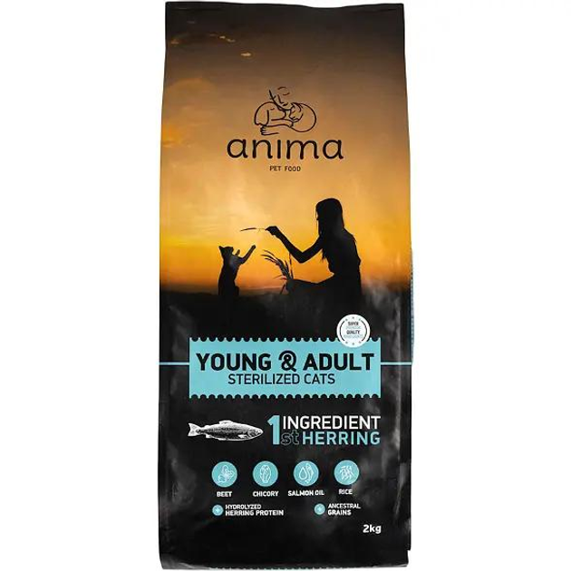 Сухий корм Anima для молодих і дорослих стерилізованих кішок з оселедцем 2кг