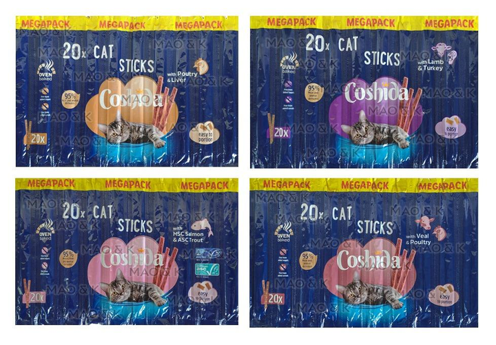 Набір ласощів Coshida MEGAPACK для котів м'ясні палички асорті 4 смаки (4 блістери по 20 паличок) (4056489915195/nabir)