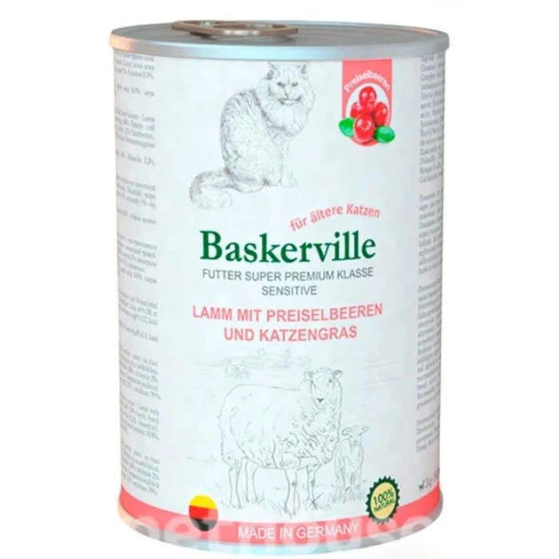 Вологий корм для котів Baskerville Holistic Ягня, журавлина та котяча м’ята, 400 г