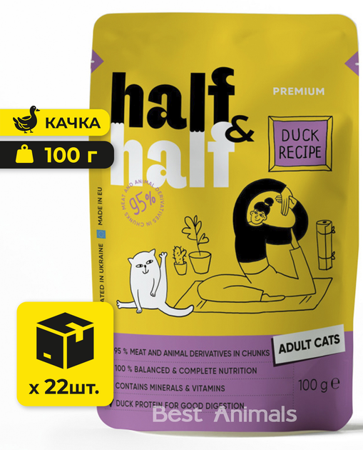Вологий корм для котів з качкою Half&Half шматочки у соусі пауч 100 г 22 шт (4820261920918)