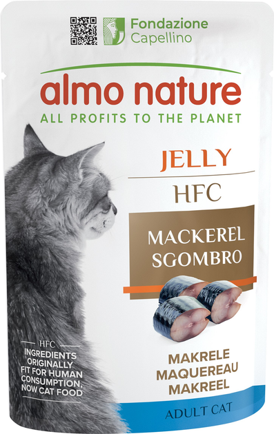 Упаковка вологого корму для кішок Almo Nature HFC Cat Jelly пауч, скумбрія 55 г х 6 шт (2000981172077)