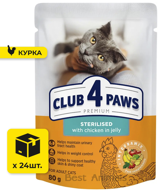 Вологий корм з куркою в желе Club 4 Paws Клуб 4 Лапи для стерилізованих котів пауч 80 г (4820215369305)
