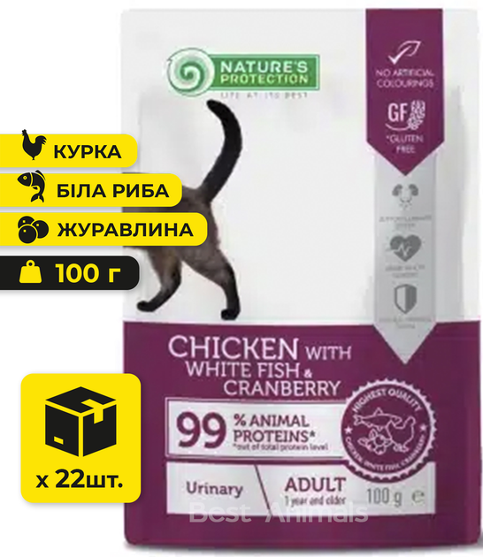 Вологий корм для котів Nature's Protection Натюр Протекшн з куркою білою рибою та журавлиною пауч 100 г 22 шт (4779051636549