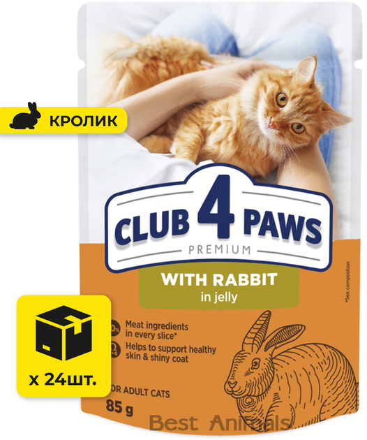 Вологий корм для котів Club 4 Paws Клуб 4 Лапи з кроликом в желе пауч 85 г 24 шт (4820269142510)