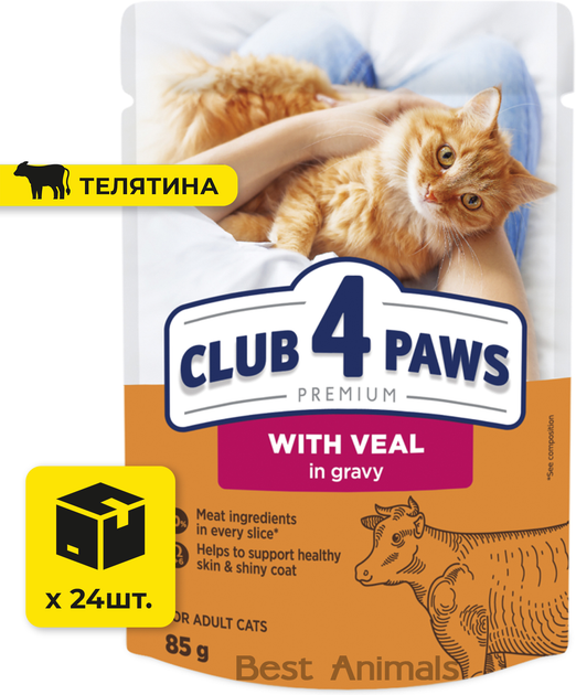 Вологий корм для котів Club 4 Paws Клуб 4 Лапи з телятиною в соусі пауч 85 г 24 шт (4820269143012)