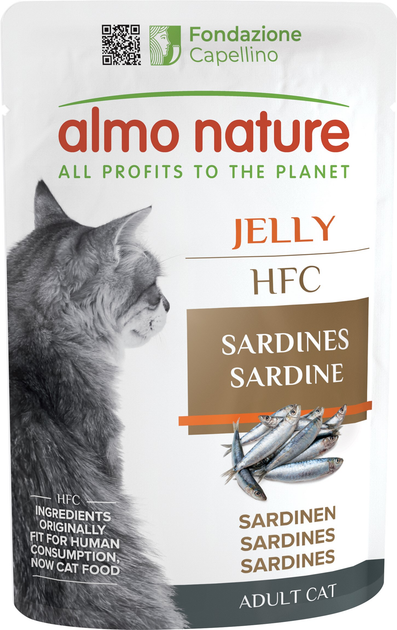 Упаковка вологого корму для кішок Almo Nature HFC Cat Jelly пауч, сардина 55 г х 6 шт (2000981172060)