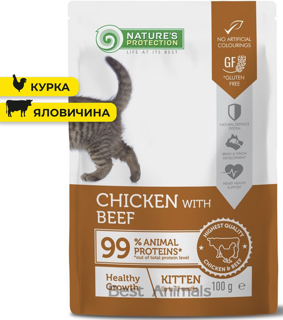Вологий корм для кошенят Nature's Protection Натюр Протекшн з куркою та яловичиною пауч 100 г 1 шт (4779051636563)