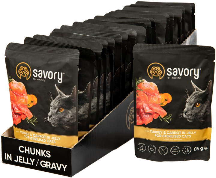 Набір вологих кормів Savory Cat Pouch for Sterilised with Turkey and Carrot in Jelly 85 г, 22 шт (2700000029343)