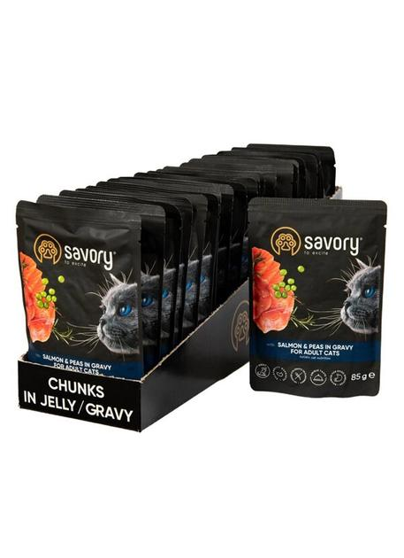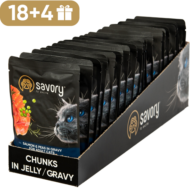 Набір вологих кормів Savory Cat Pouch for Adult with Salmon and Peas in Gravy 85 г, 18+4 шт (2700000029350)