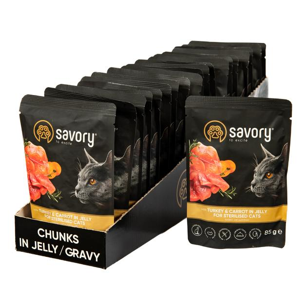 Блок вологих кормів для стерилізованих котів Savory Cat Pouch for Sterilised, with Turkey and Carrot, індичка з морквою в же