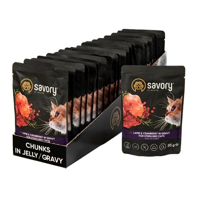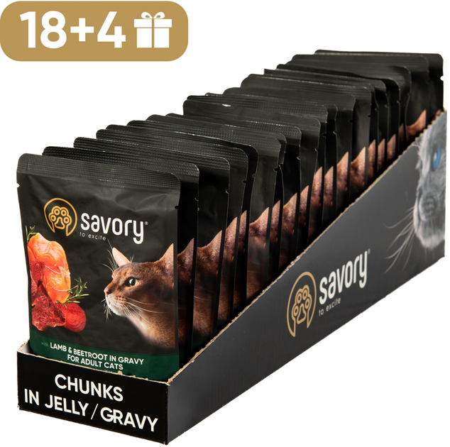 Набір вологих кормів Savory Cat Pouch for Adult with Lamb and beetroot in Gravy 85 г, 18+4 шт (2700000029367)