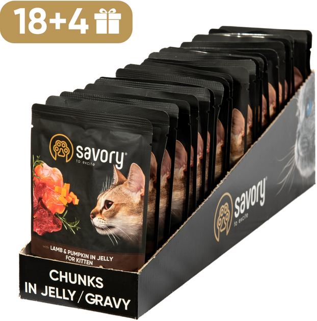 Набір вологих кормів Savory Cat Pouch for Kitten with Lamb and Pumpkin in Jelly 85 г, 18+4 шт (2700000029329)