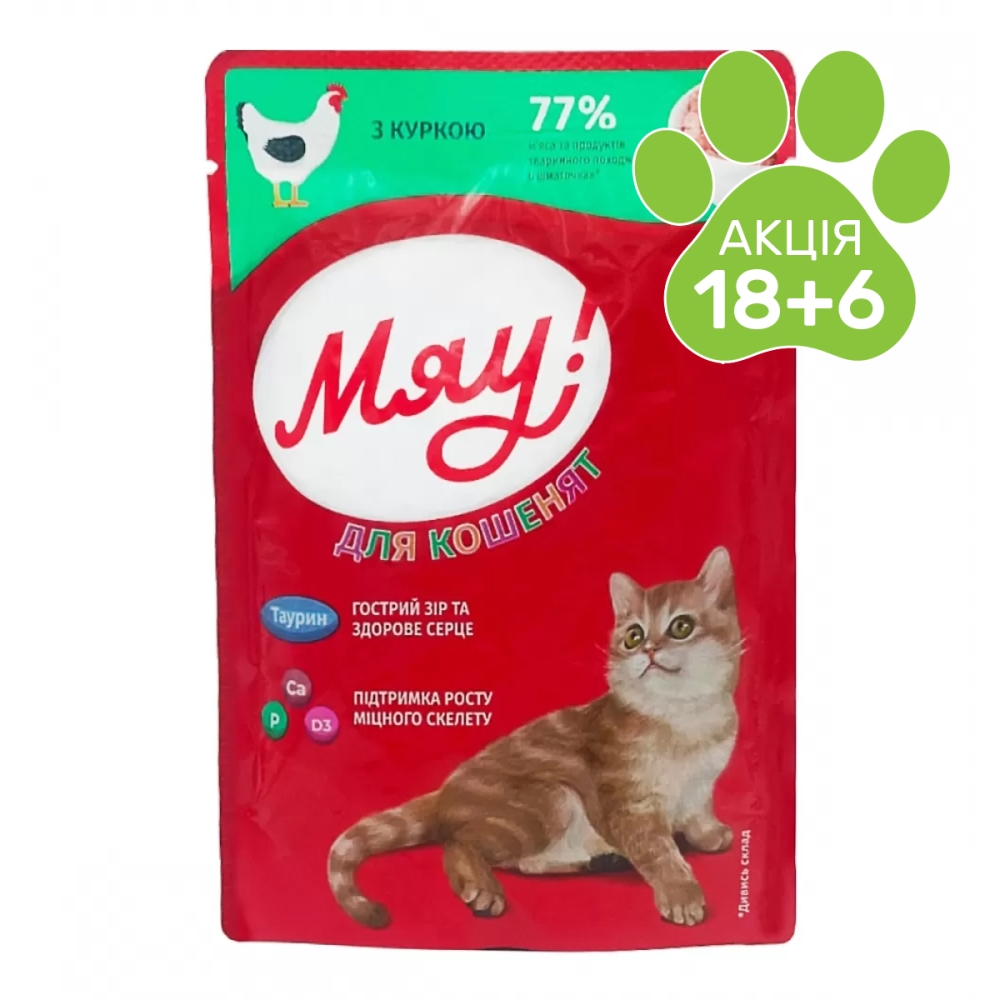 Мяу! (Пауч) Консервований корм для кошенят 18+6 × 85 гр