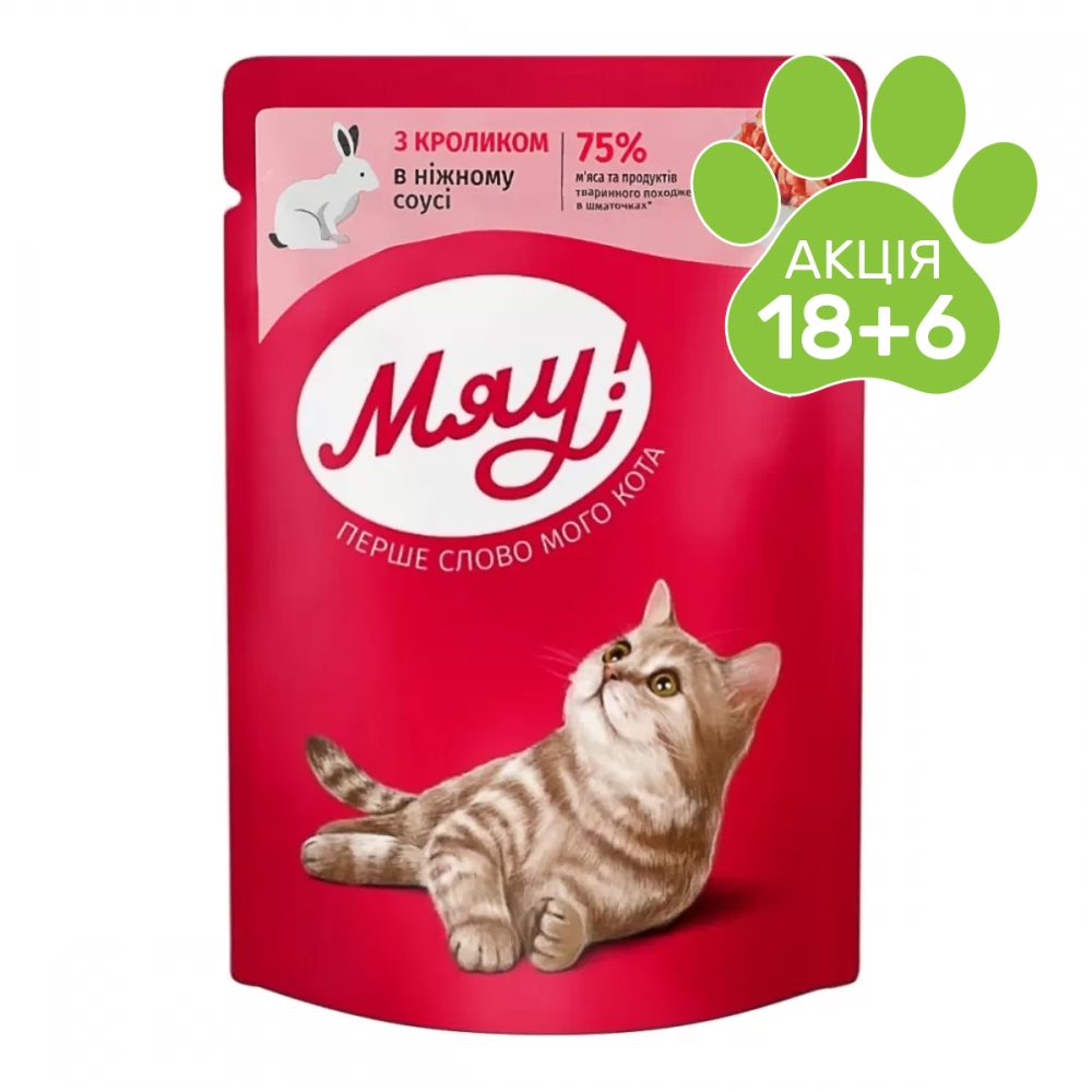 Мяу! (пауч) Консервований корм для кішок з кроликом в ніжному соусі 18+6 × 85 гр