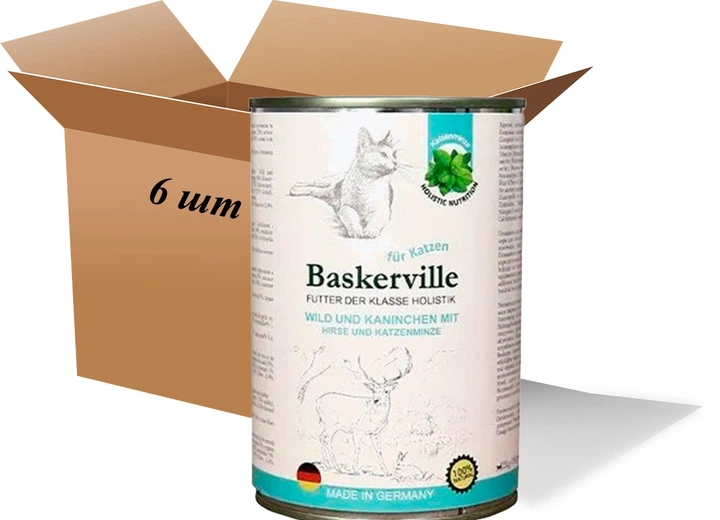 Вологий корм для котів Вaskerville, Holistic Оленіна з кроликом та котячою м'ятою, 400 г (6 шт. упаковка)
