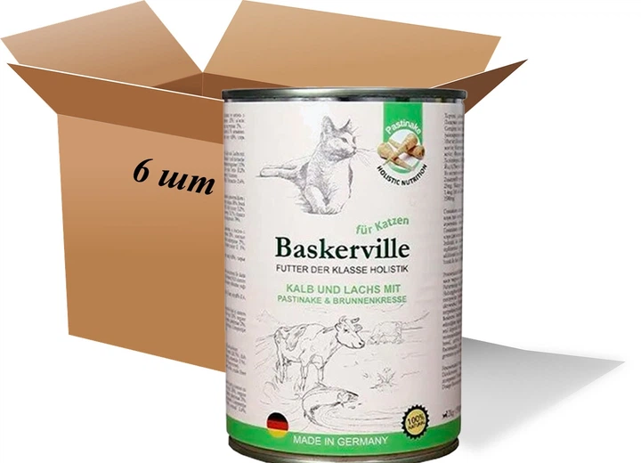 Вологий корм для котів Вaskerville, Holistic телятина та лосось з пастернаком та крес-салатом, 400 г (6 шт. упаковка)