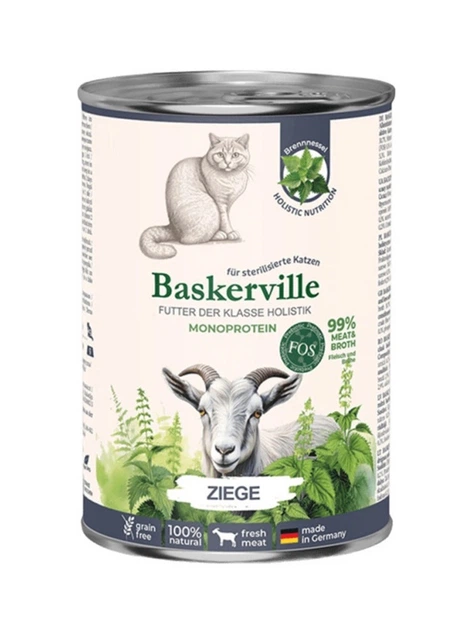 Консервований корм Baskerville FOS Holistic для стерилізованих та малорухливих кішок, м'ясо кози, 6 шт х 400 г
