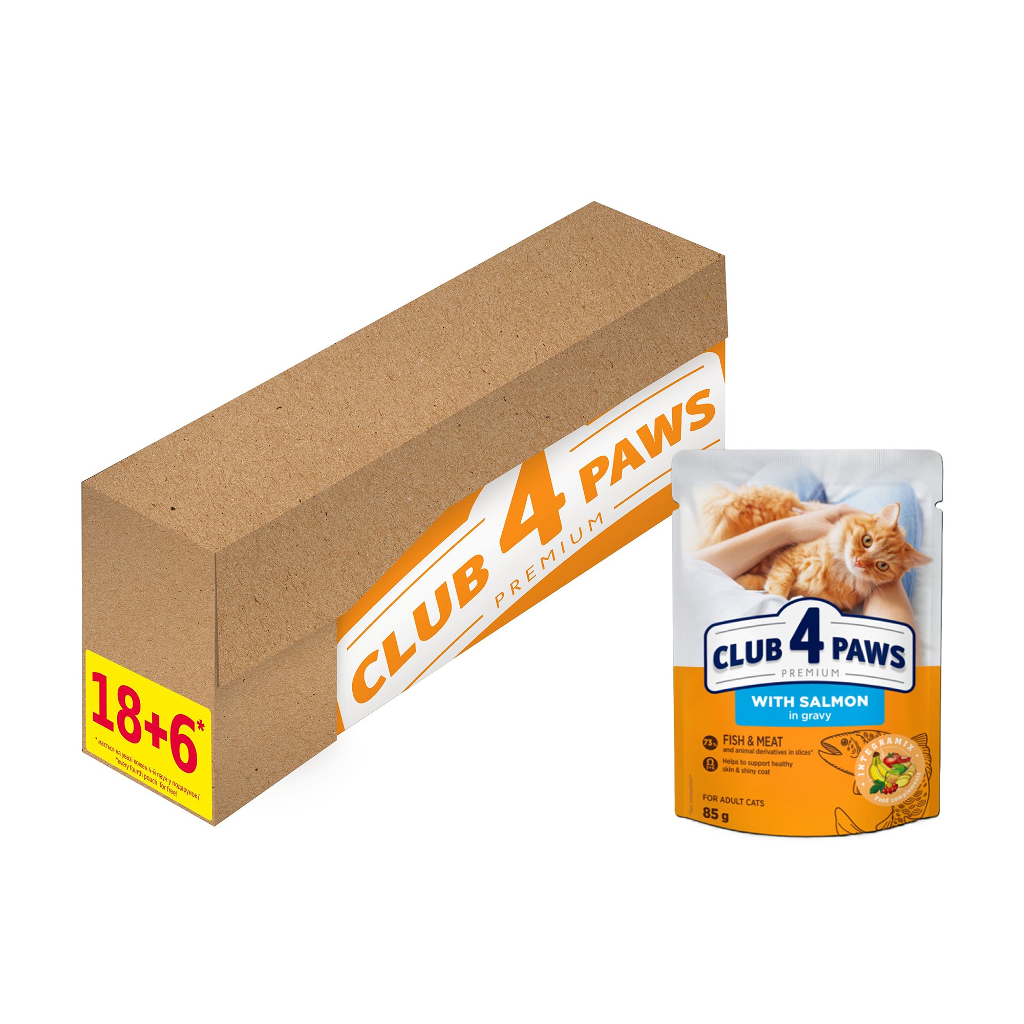 Вологий корм для дорослих кішок Club 4 Paws Premium Лосось в соусі, 18+6*85 г