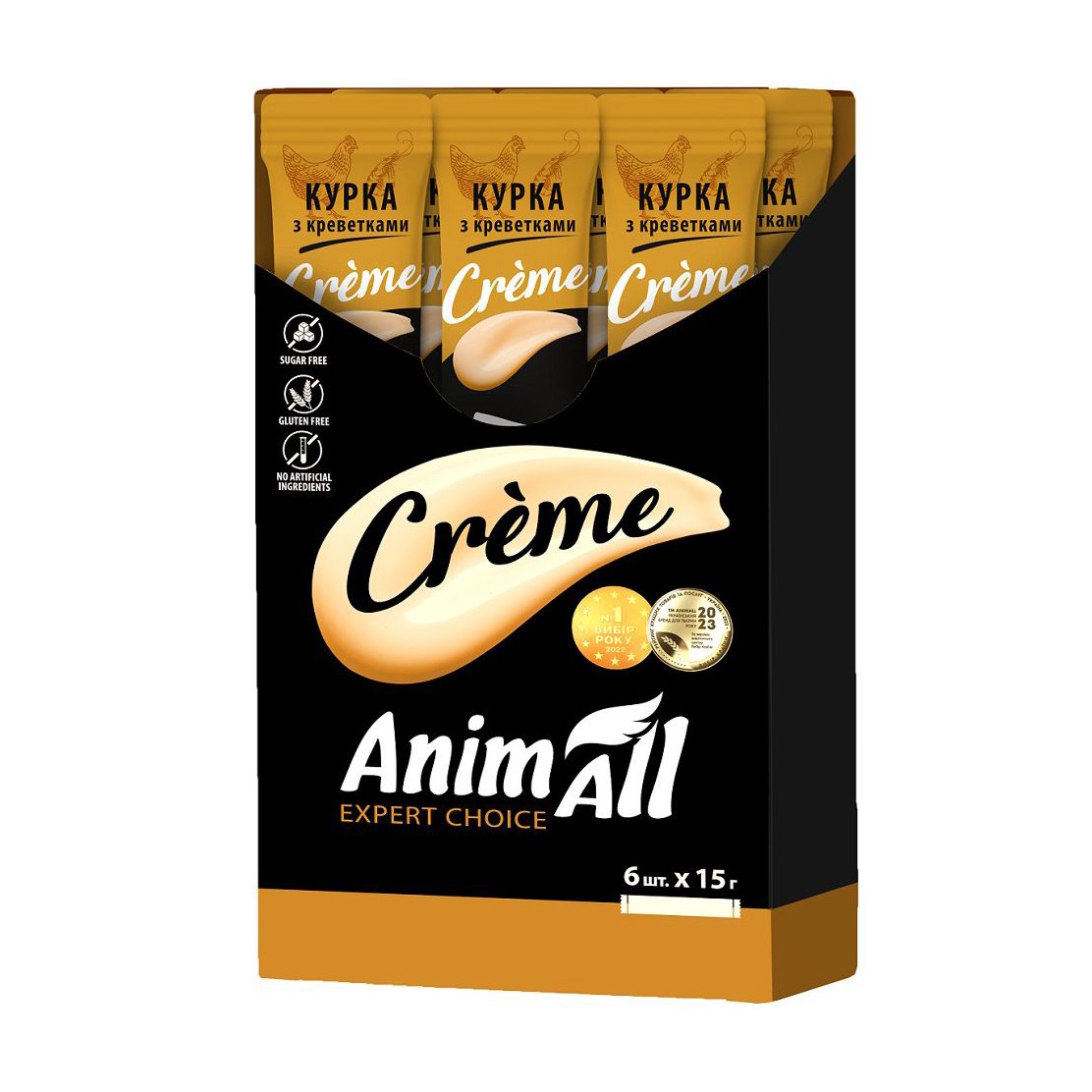 Ласощі для котів AnimAll Creme з куркою та креветками, 6*15 г