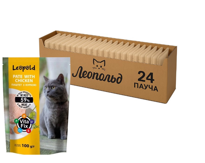 Леопольд Паштет з куркою для котів, пауч 100 г (24 шт/уп)