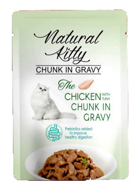 Паучі Natural Kitty Chunk in Gravy Chicken with Tuna шматочки курки та тунця з курячою печінкою у соусі 85 г NKS240805