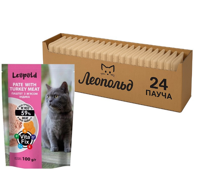 Леопольд Паштет з індиком для котів, пауч 100 г (24 шт/уп)