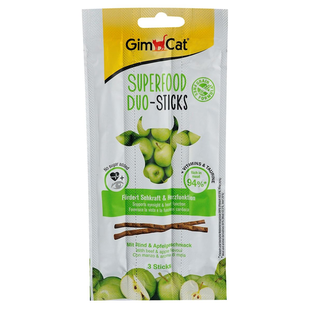 Ласощі для котів GimCat Superfood Duo-Sticks яловичина та яблука, 3 шт