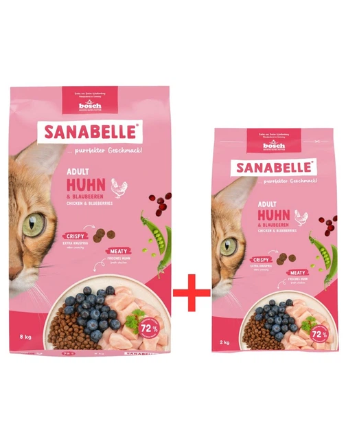 Набір Сухого корму для котів Бош Едалт Курка, Bosch Sanabelle Adult Chicken (8 кг + 2 кг)