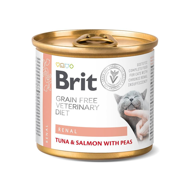 Вологий корм для кішок Brit Veterinary Diet Renal хронічна ниркова недостатність з тунцем та лососем 200 г (100714/9870)
