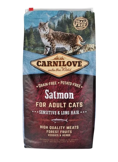 Сухий корм Carnilove Salmon Sensitive & Long-Hair для дорослих кішок з чутливим травленням 6 кг