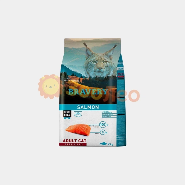 Сухий корм для кішок BRAVERY Salmon Adult Cat Sterilized,для дорослих котів стерилізованих, з лососем, 2 кг