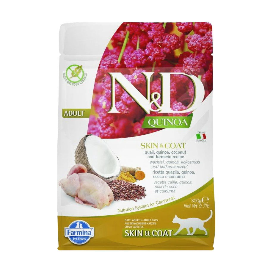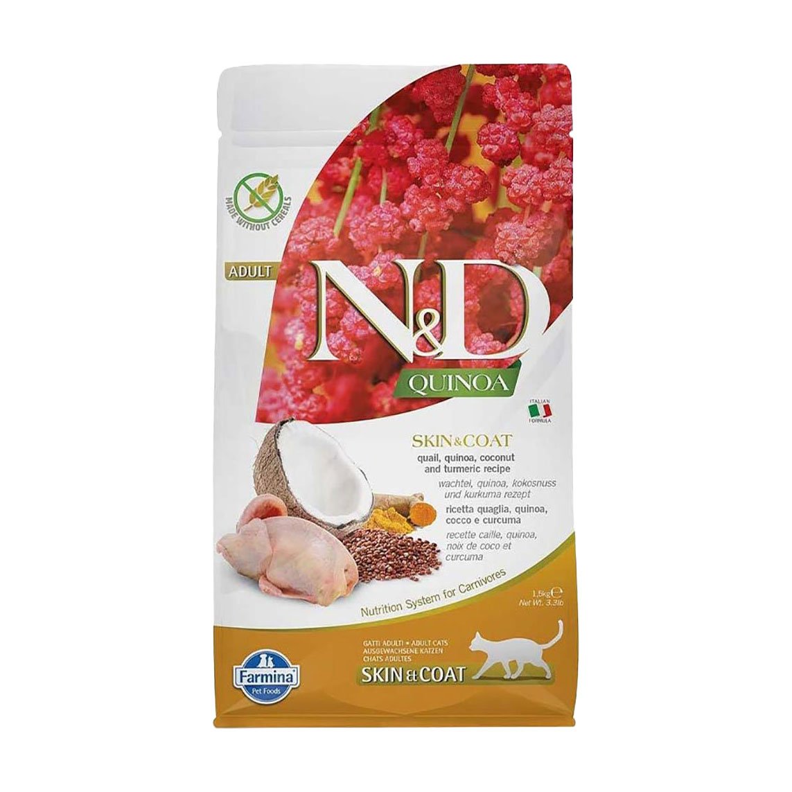 Беззерновий сухий корм для дорослих котів Farmina N&D Quinoa Skin&Coat Adult при харчовій алергії, з перепілкою, кіноа, коко