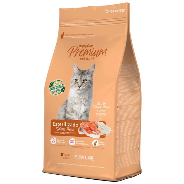 Сухий корм happyOne Premium Sterilized Fresh Salmon для стерилізованих кішок зі свіжим лососем 1,5кг
