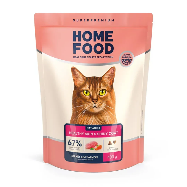 Сухий корм Home Food здорова шкіра та блиск шерсті для дорослих котів Індичка та лосось 400 г