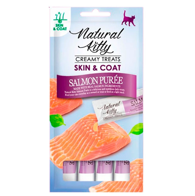 Ласощі для кішок Natural Kitty Functional Cream Treat Salmon Puree Skin & Coat пюре з лососем, 4 шт х 12 гр